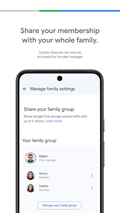 • Manage your existing Google account storage across Google Drive, Gmail and Google Photos.