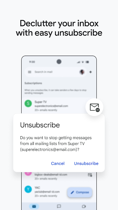 The official Gmail app brings the best of Gmail to your Android phone or tablet with enhanced security protections, multiple account support, and powerful search to find the details you need. Use the power of Google AI to help you write, organize, search, and clear your inbox even faster. Gmail is also available on Wear OS so you can stay productive and manage emails right from your wrist.