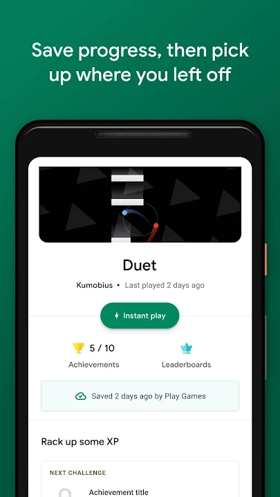 • 玩家资料:创建自定义玩家 ID,记录您在各款 Google Play 游戏上赚取的 XP 值和升级情况。