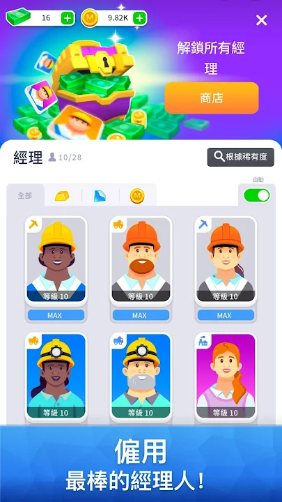 召集最優秀的經理人,打造夢幻團隊,克服所有礦業挑戰!明智地分派他們的職務,創造最有效率的生產流程!僱用具備獨特技能的經理人,將他們指派到礦業營運的各個部門!