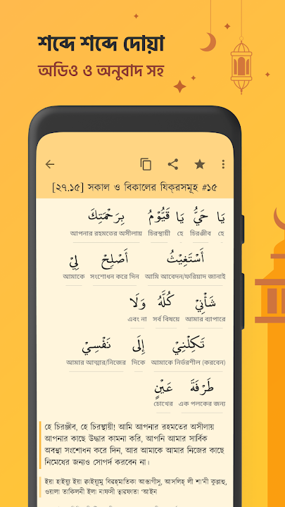 Hope you like this Hisnul Muslim (Fortress of the Muslim) Bangla App containing Authentic Duas & Zikrs of Islam. Remember you can use Ridmik / Avro style phonetic to convert English to Bengali. You can download and share Hisnul Muslim Audio as well.