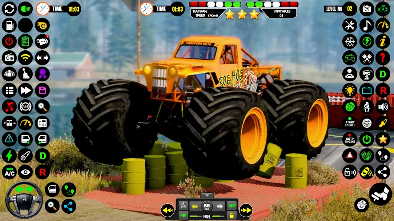 在《极限怪物卡车3D游戏》中,您需要驾驶怪物卡车并完成各种任务。《极限怪物卡车3D游戏》的不同模式有不同的任务。