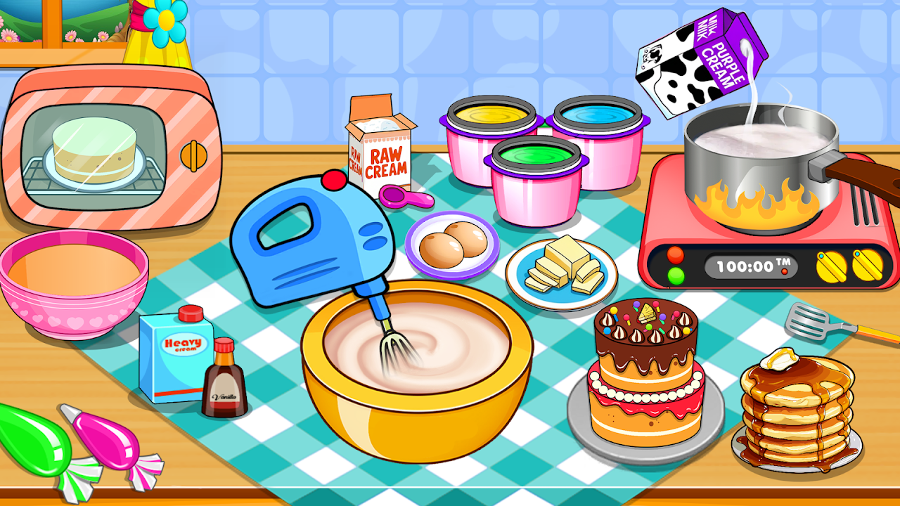 - 逼真的免费烹饪游戏机制:厨房套装游戏 2 交互式厨房工具,如炉灶、烤箱、搅拌机、搅拌器和切菜板,是厨房等价游戏的一部分。