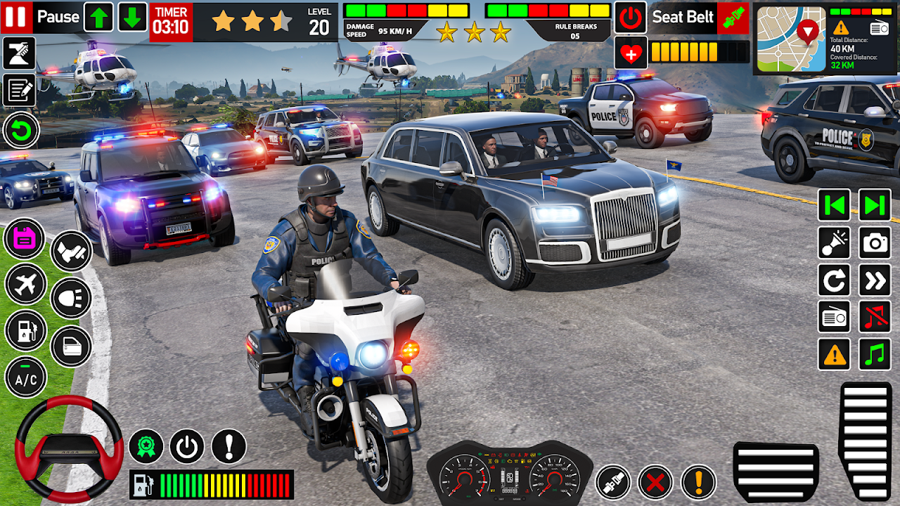 As you progress, the adrenaline-pumping action begins with heart-pounding cop chases through the sprawling city streets. Engage in thrilling pursuits, navigating tight corners, and weaving through traffic with precision. Utilize the advanced cop chase simulator to outmaneuver the criminals, bringing them to justice.