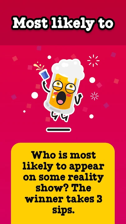 无论您是想为夜晚增添情趣、举办晚会、为一个重要的夜晚做赛前准备,还是只是让您的朋友透露他们的秘密,这款饮酒游戏都是您的一站式商店。谁会在这场终极饮酒游戏中脱颖而出?