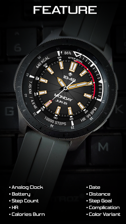 适用于日常和体育活动的 Analog Sport V5 表盘。适用于 Wear OS 智能手表。特征 :