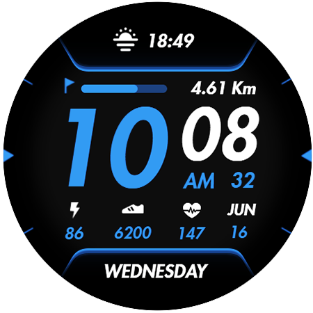 Digital watchface for daily and sport activities. For Wear OS smartwatch. Feature :