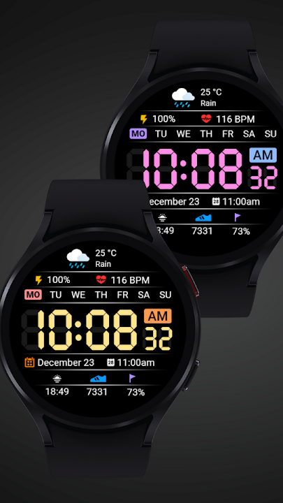 适用于 Wear OS 的数字仪表板表盘。特征 :1. 数字时钟2. 日期3. 电池4、人力资源5. 计步6. 天气7. 步数目标8. 并发症9. 颜色变化10.AOD