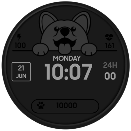 狗爱好者的狗图片表盘。适用于 Wear OS 智能手表。