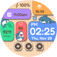 Cute Shark Blocks watchface for Wear OS. Feature :