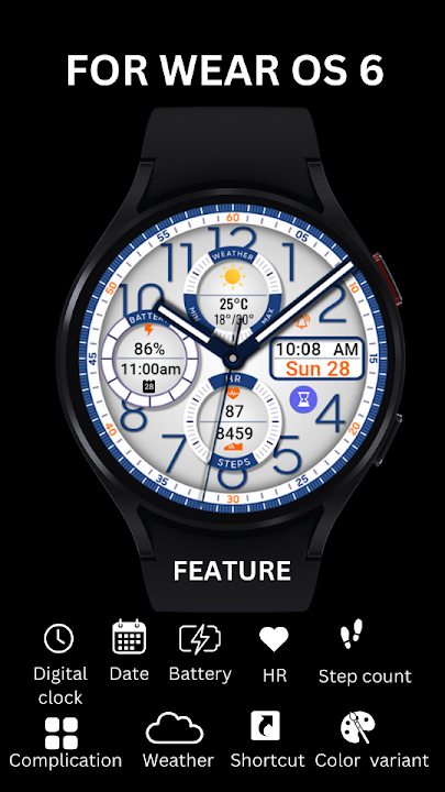 Hybrid Signature 5 watchface for Wear OS 6. Feature :