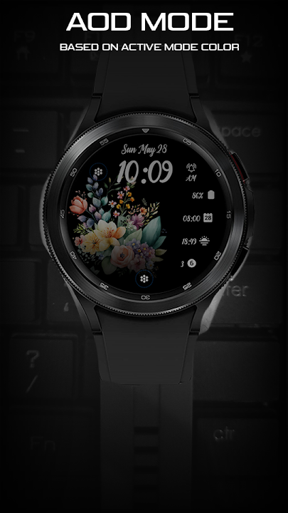 带有春天花朵插图的数字表盘。适用于 Wear OS 智能手表。特征 :