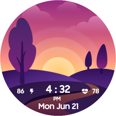 適用於 Wear OS 智能手錶的簡單時間風景數字錶盤。
