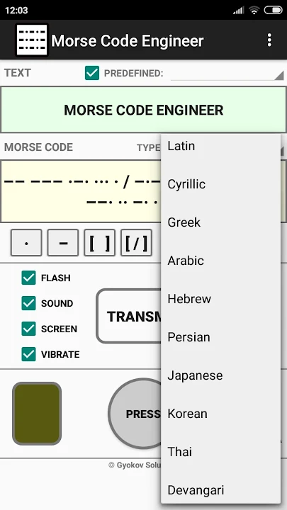 Morse code audio and light decoder, transmitter and morse code <-> text translator. Decode morse code transmission audio or light. Transmit using sound, flash, screen and vibration