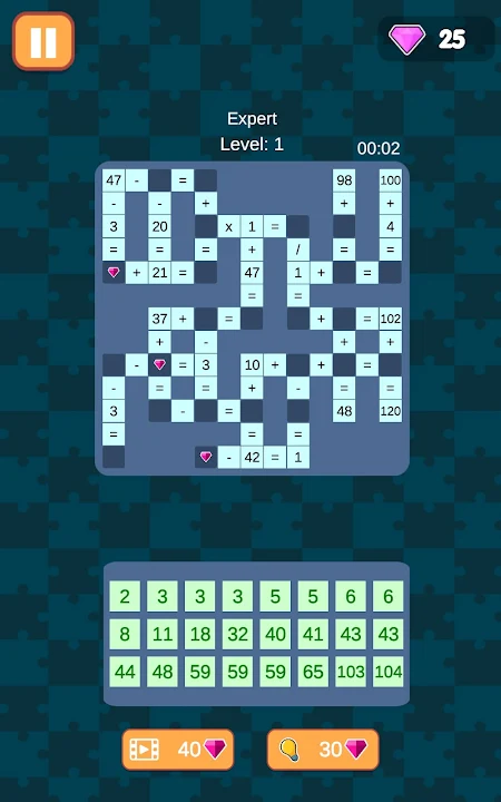 用填滿等待解的方程式的填字遊戲式網格來挑戰自己。在數百個級別中測試您的數學技能,每個級別都比上一個級別更具挑戰性。從初學者到數學愛好者,Math Cross Mania 都能滿足每個人的需求。