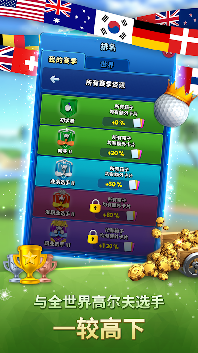 - 击破世界各国的高手来挑战成为高尔夫冠军!
