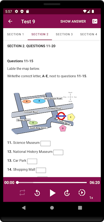 - 12 IELTS Listening Test: Each Test has 4 sections.