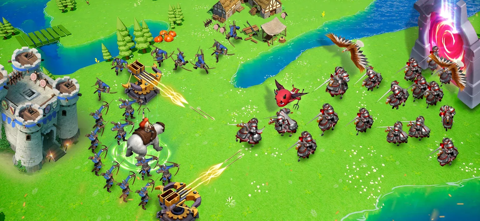 On a world map, unleash RTS (Real-Time Strategy) battles, leveraging the unique terrain features of each vast region for strategic layouts. Seize resources, engage in real-time combat with countless players, and dominate the battlefield!