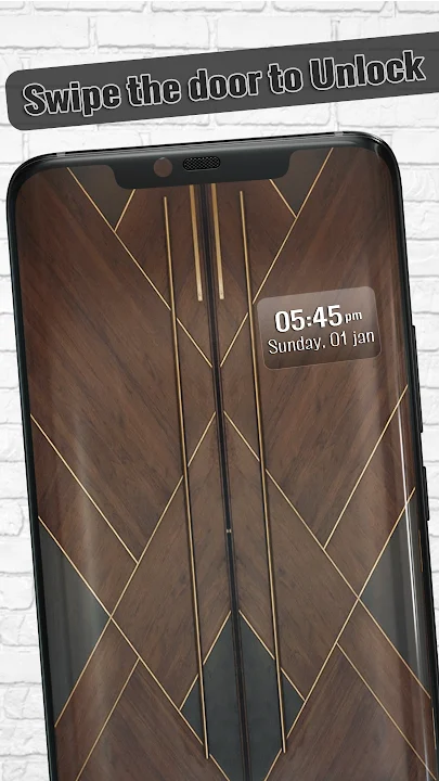 This screen lock contains wooden door styles to set as screen lock which you can unlock by tap on the door to open the double doors with a beautiful smooth door animation. It will produce realistic door sounds which makes it more fun to use.
