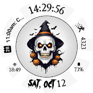 Get ready for a spooky Halloween with the Halloween Skull Watch Face for Wear OS ! Featuring a creepy skull with a witch hat and haunting background elements, this watch face brings the perfect eerie vibe to your wrist.