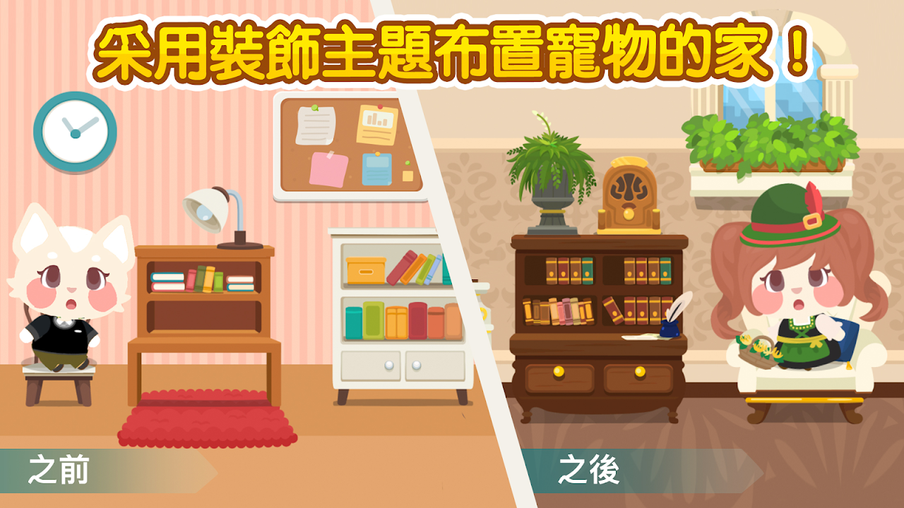✔ 300多套家具和裝飾品,隨著你的喜好和想像力,自由地佈置寵物的家