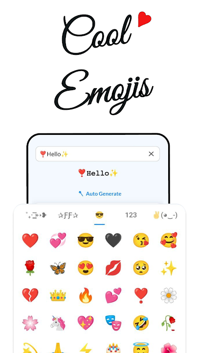 This app can also act as a text generator app or username generator for your games where you can create your distinctive design text from scratch, make your status updates fun and your chats special. Make your own cool name or nickname for your friends and family, or design text you want to share with your friends. You can amaze everyone with your choice of styles and stylish letters by using this letter style change app.