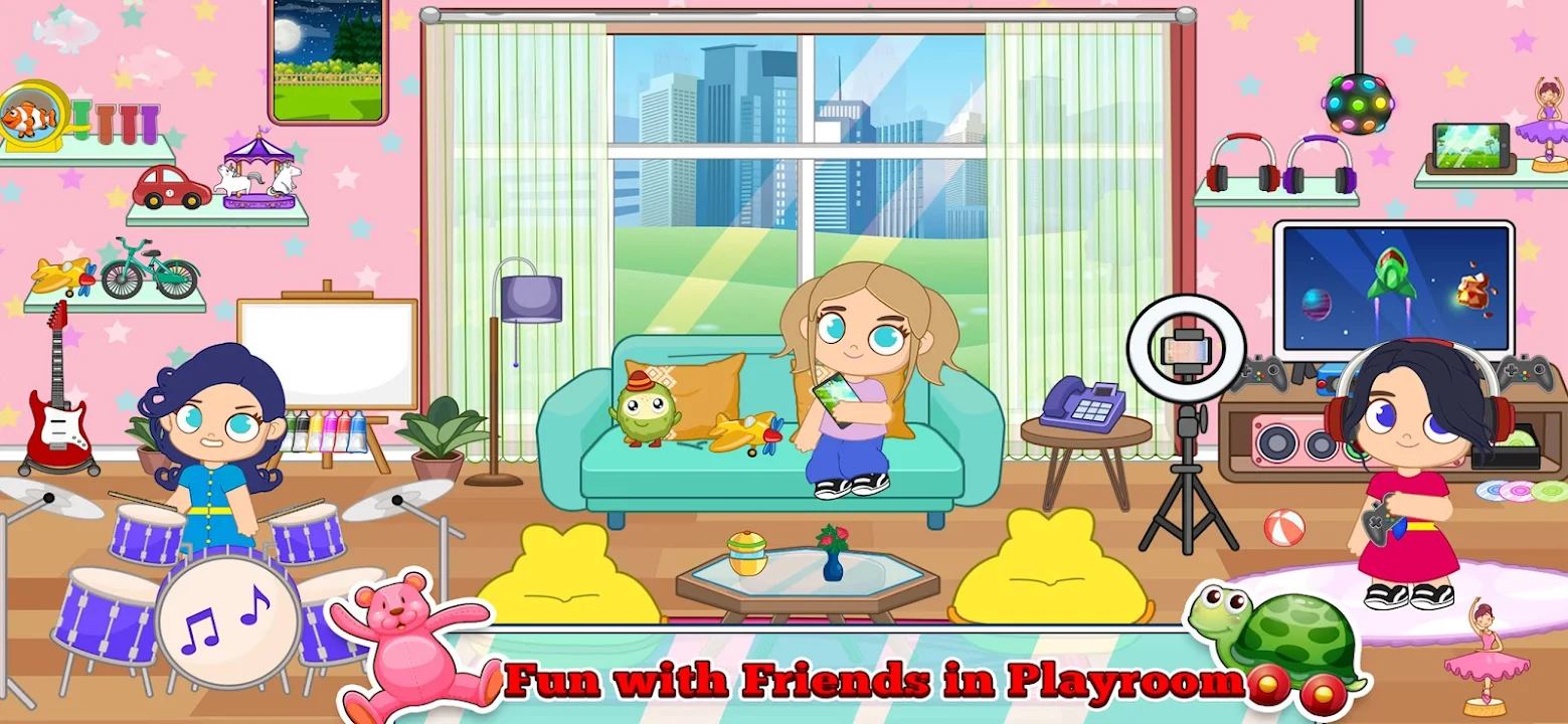 It's time to make your dollhouse by using your design & decoration skills. Rearrange the luxury mansion rooms and take your home decor imagination to the peak. Roleplay as a princess housekeeper and enjoy luxury mansion cleaning fun. Play with basketball and enjoy the autism city life by interacting with tons of fun activities. Whether to become a musician or a matchup puzzle master, each character in pretend my dollhouse game is imaginative and interactive to explore.