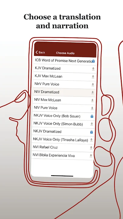 • 从 NIV、KJV 和 NVI 的多种音频旁白风格中进行选择,包括戏剧化和纯语音。