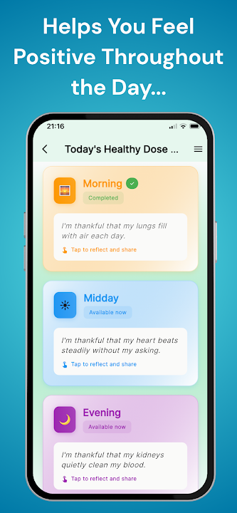 「健康感恩」每天發送三次簡短的提醒,分別在早晨、中午和晚上。讓你在短暫的停頓中,重新與美好的事物建立連結。