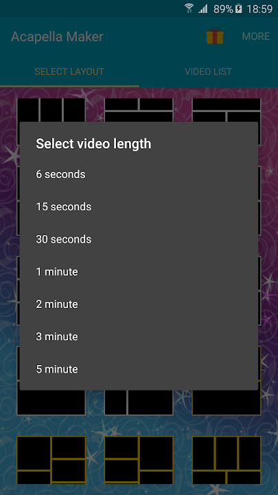 創建真棒阿卡貝拉視頻與阿卡貝拉設備:1.選擇佈局與您的視頻2.填寫它3.Combine和與朋友分享的阿卡貝拉視頻