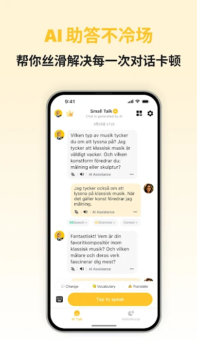 通过 AI 个性化对话课程、趣味互动练习、真实场景模拟和游戏化词汇练习,你可以轻松掌握日常交流、商务会话和旅行所需的核心瑞典语技能。