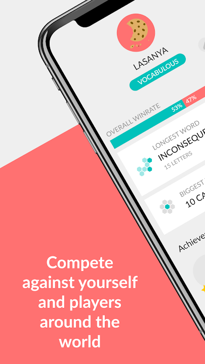 - Each game features unique words on our grid of hexagon tiles