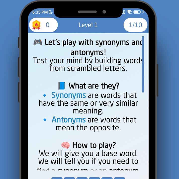 🧠 "Synonyms & Antonyms PRO" is a fun and educational vocabulary game designed to improve your verbal skills, expand your vocabulary, and help you learn new words through interactive challenges.