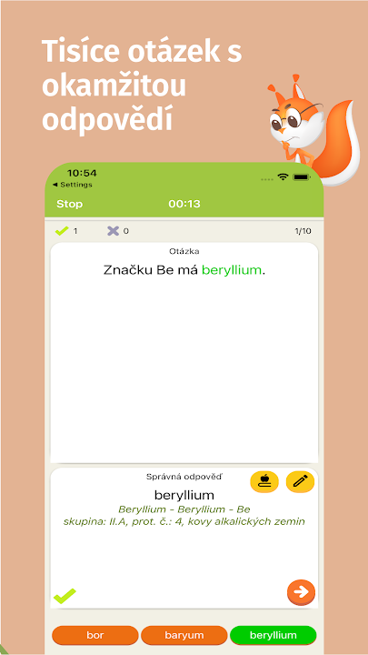 In the application, you will find theory and, above all, tests for elements of the periodic table, formulas and names of oxides, sulfides, nitrides, halides, hydroxides, and oxygen-free and oxygen-free acids.