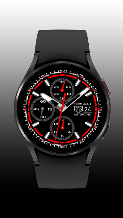 This high-performance analog watch face brings the legendary look of the TAG Heuer F1 Chronograph to your smartwatch. Designed for motorsport enthusiasts and style lovers alike, it blends precision layout, racing DNA, and bold elegance — now in four striking color options.