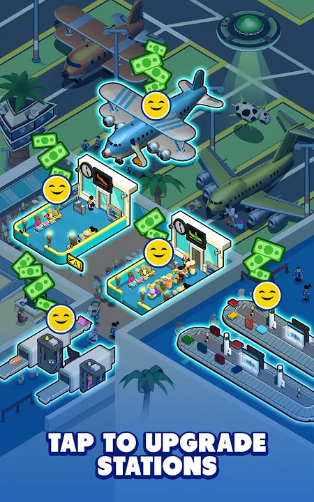 • 在这款放置类点击游戏中,建造登机口、VIP 候机室、商店、餐厅等等!