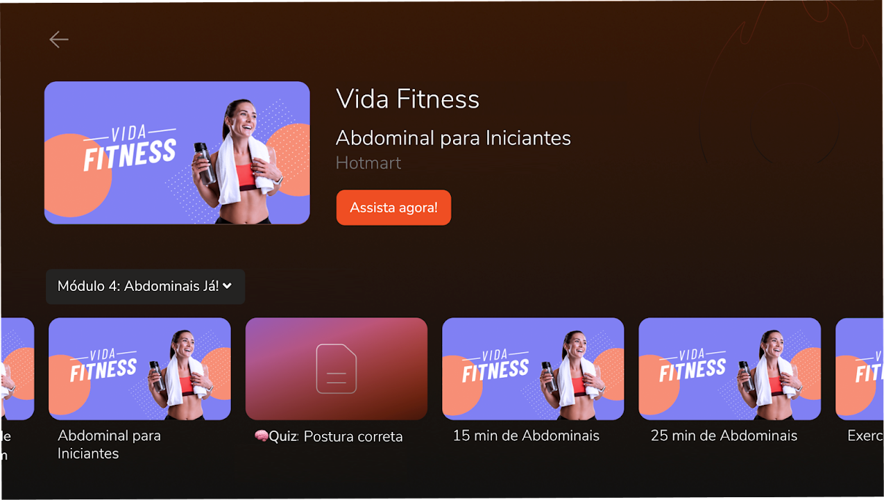 在您的智能電視上下載免費的 Hotmart 應用程序,登錄您的 Hotmart 帳戶,就是這樣!您可以瀏覽您的課程並選擇一個來玩。
