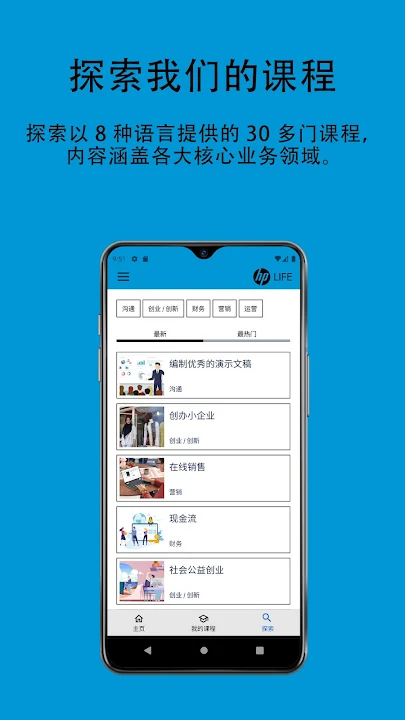 即刻下载该应用程序并加入 HP LIFE 全球数十万用户的行列,与他们一起学习高需求技能和核心业务理念。