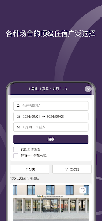 - 轻松找到您的住宿:找到特定的酒店或受到我们广泛的优惠范围的启发。