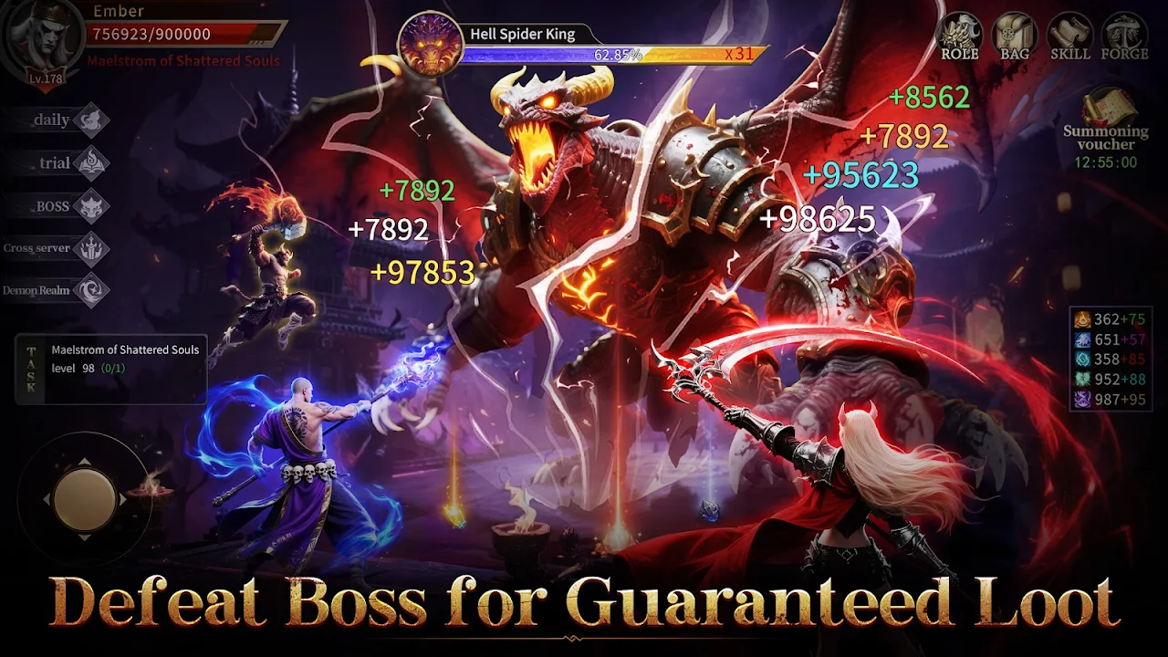 Challenge the mighty World Boss alone or in a team. The bosses are the oldest and most powerful gods in the world. Players are so small in front of them. You need to rely on the power of heroes or teammates to challenge them and win legendary loots and EXP. The first blood reward is waiting for you.
