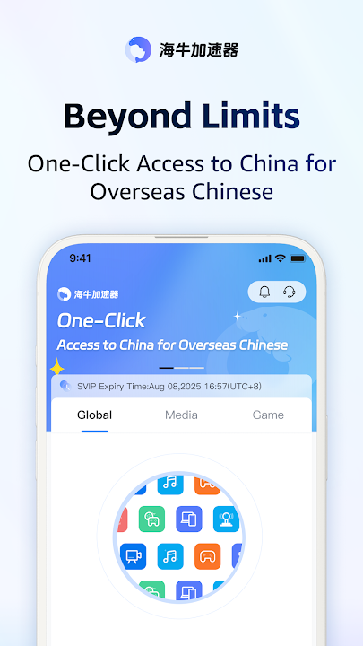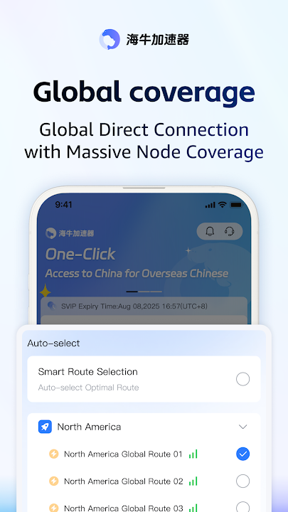 Hainiu Accelerator is a network acceleration tool for overseas Chinese, students, overseas workers, and outbound tourists. It helps overseas Chinese and students effectively reduce network delays and supports a variety of needs for returning from overseas, including but not limited to: chasing dramas, listening to music, playing games, watching sports events, online live broadcasts, reading literature, grabbing tickets overseas, working, and stock trading. One-click acceleration to return to China meets the various needs of overseas Chinese returning to China.