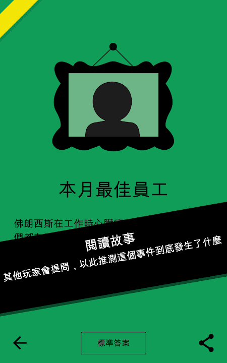 之後出題者默默閱讀解答,不要告訴其他人。 其餘的玩家則需要通過對出題者提出問題來解決這個推理故事。