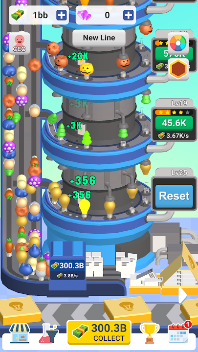 Starting from the first light bulb production line, produce light bulbs, transport them to the conveyor belt, and sell them. Use the profit to upgrade the production line to improve production efficiency. You can also buy new production lines to generate more light bulbs. When you have enough wealth, you can hire administrators to help you manage. Continuously develop your company until it becomes the largest one in the world.