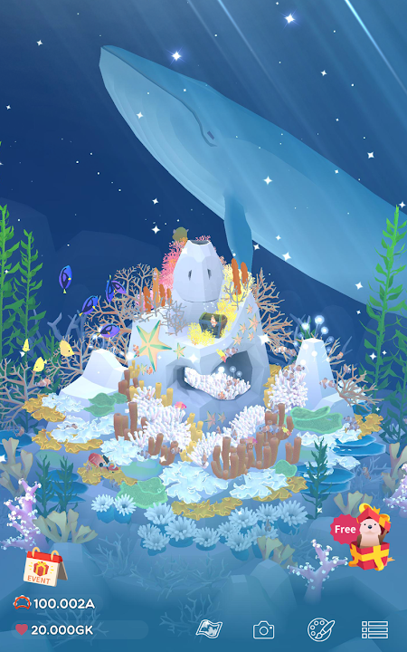 ‘深海水族館’描繪了珊瑚石和可愛的魚兒們玩耍的水族館的成長。每個都有自己的故事,很多的魚兒在等著您的訪問。要不要試試您自己的水族館?邀請新的魚兒朋友們到深海一起聽舒適的BGM,治愈和休息。您可以放任不管,因為只需要您的關心。