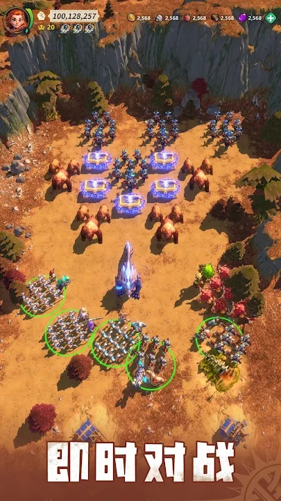 创新策略机制,立体化战斗体系:主副英雄协同作战,策略羁绊以弱胜强。4大兵种自由行军,立体化布局,微操走位逆风翻盘。