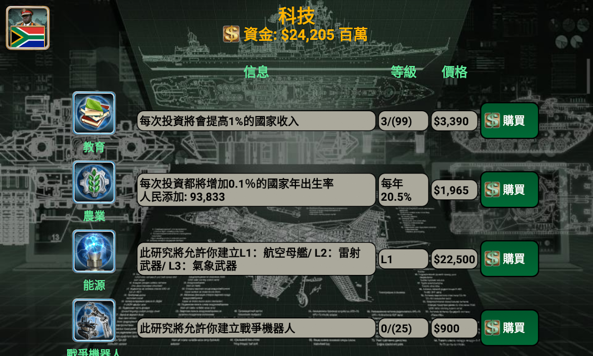 選擇您想要領導的國家(54個國家/地區!)並與智能AI敵人對戰。憑藉出色的領導技能,戰略和戰術,您可以帶領您的國家取得勝利。