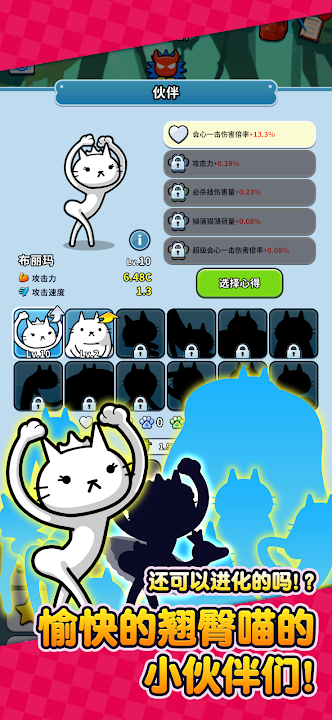 放置升级!翘臀喵们的大冒险角色扮演游戏!无论是谁都能轻松上手,消磨时间的最佳选择!