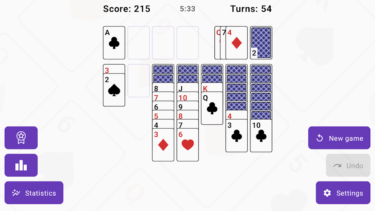 It is played with one deck of 52 cards. The goal of the game is to arrange the cards by suit in order from ace to king in four piles (they are sometimes called basic, or "houses"). The card can be shifted to another higher rank, but of a different color (black or red). In each of the four basic piles (houses), according to which all the cards must be laid out, aces are first placed, then twos, threes, and so on to the king. Cards can be dealt from the deck remaining from the distribution (in the upper left corner) either one or three pieces, depending on the modification. Only the king can be placed in a free cell (not a house). The game ends when all the cards are laid out.