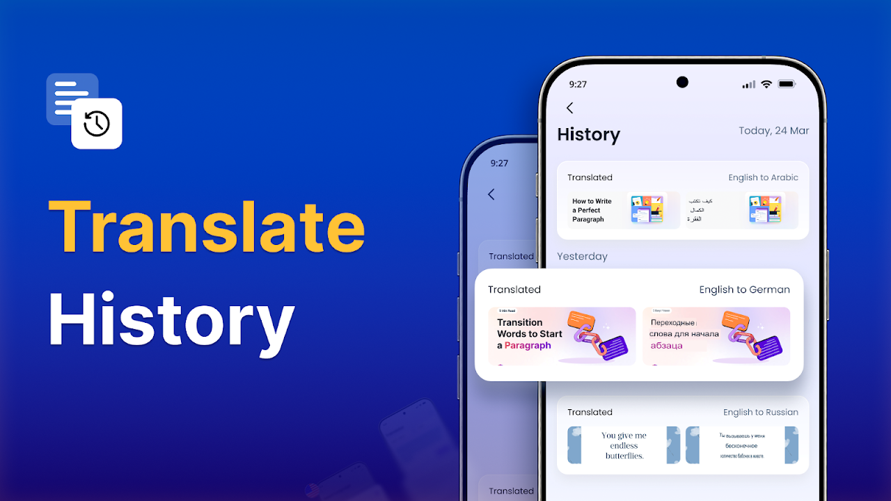 圖片翻譯器會保存您的翻譯結果,方便您日後輕鬆訪問,或直接與朋友、同事或社交媒體平台分享。您也可以複製翻譯後的文本,以便在其他應用程式中使用。圖片翻譯器採用先進的 OCR 技術掃描照片並識別文本,使其成為翻譯紙質文件、書籍甚至手寫筆記的理想選擇。拍攝任何文字或文件的照片,語言翻譯器將自動提取並翻譯內容。非常適合拍攝收據、書籍或手寫筆記的照片,確保不遺漏任何重要細節。
