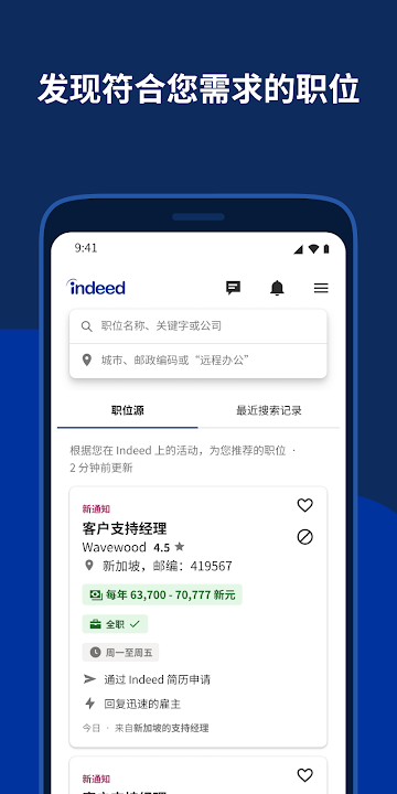 以便查找职位,并根据您的偏好和工作经验了解推荐职位。